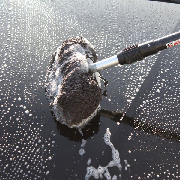 Det kan nemt placeres over en vaskebørste for ridsefri rengøring. Børsteovertrækket er lavet af mikrofiberfrynser til vådvask eller rengøring og tør støvtørring. Med sin elastik af høj kvalitet fastgøres overtrækket til børsten og forhindrer det i at falde af børsten under rengøring. Nettet på indersiden forhindrer snavs, småsten osv. i at komme ned på billakken gennem svampen.