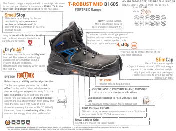 Sikkerhedsskoen er konstrueret til at modstå ekstreme forhold med varmebestandighed op til 300 °C (1 minut), varmeisolering op til 150 °C samt kuldeisolering ned til –17 °C. Den slidstærke gummisål er kulbrinteresistent, udstyret med stigegreb og testet efter SR-krav for skridfasthed på keramik og glycerin, hvilket giver stabilt og sikkert fodfæste.